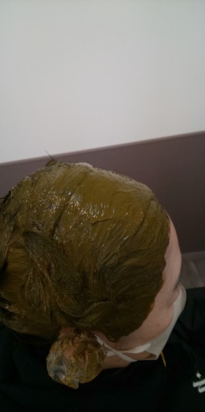 ヘナ塗布後 (国産ヘナ、オレンジ)